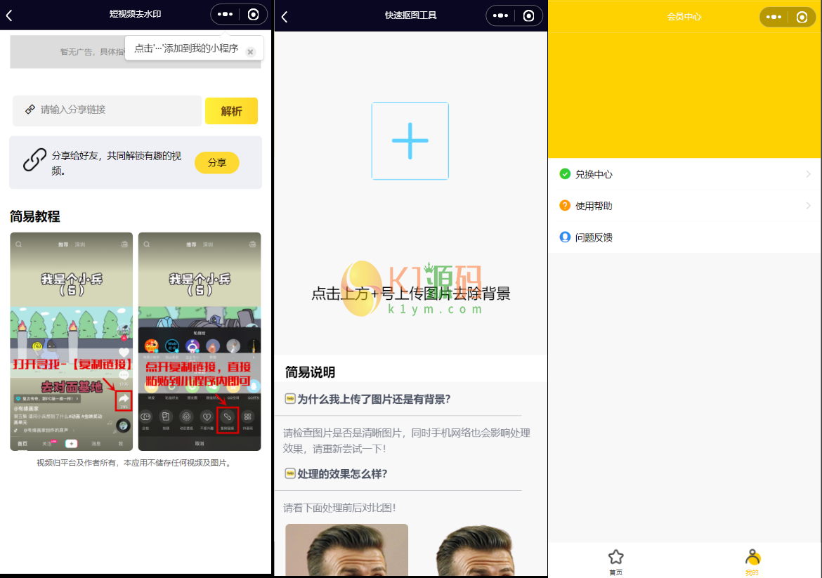 这是一款特别的小程序,验证码功能可能大家都还没见过吧! 支持全球验证码发放,支持激励视频查看更多手机号码 另外还有短视频平台去水印解析功能 和抠图功能,快速抠掉背景图等功能组合而成 另外改小程序还支持多种流量主模式 比如激励视频,banner广告啦等等! 声明:本站所有文章,如无特殊说明或标注,均为本站原创发布。任何个人或组织,在未征得本站同意时,禁止复制、盗用、采集、发布本站内容到任何网站、书籍等各类媒体平台。如若本站内容侵犯了原著者的合法权益,可联系我们进行处理。