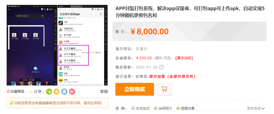 也可以上传打包好的apk五分钟自动更换包名和签名,