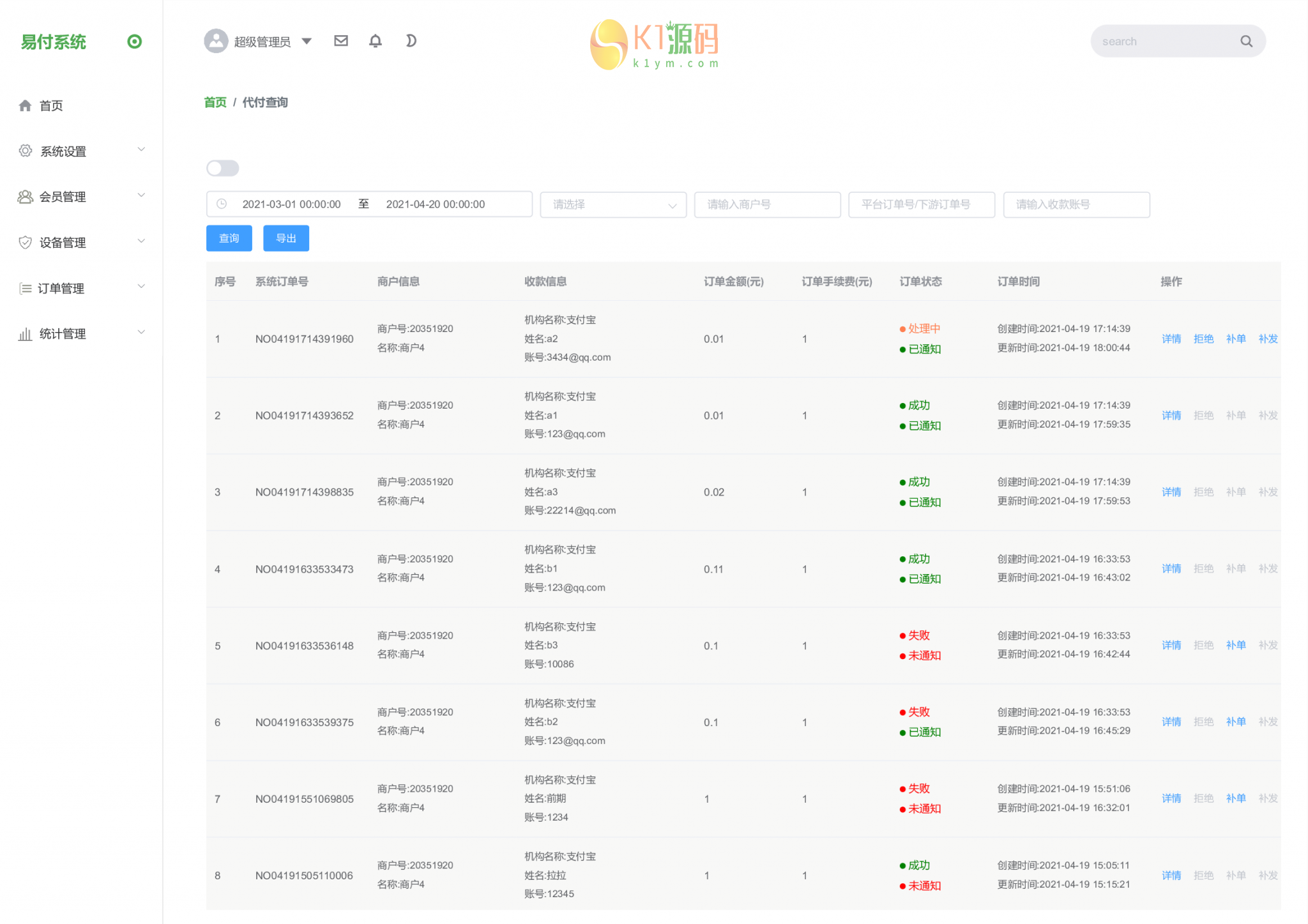 多笔代付:一次提交多个代付订单信息,系统一次全自动完成。