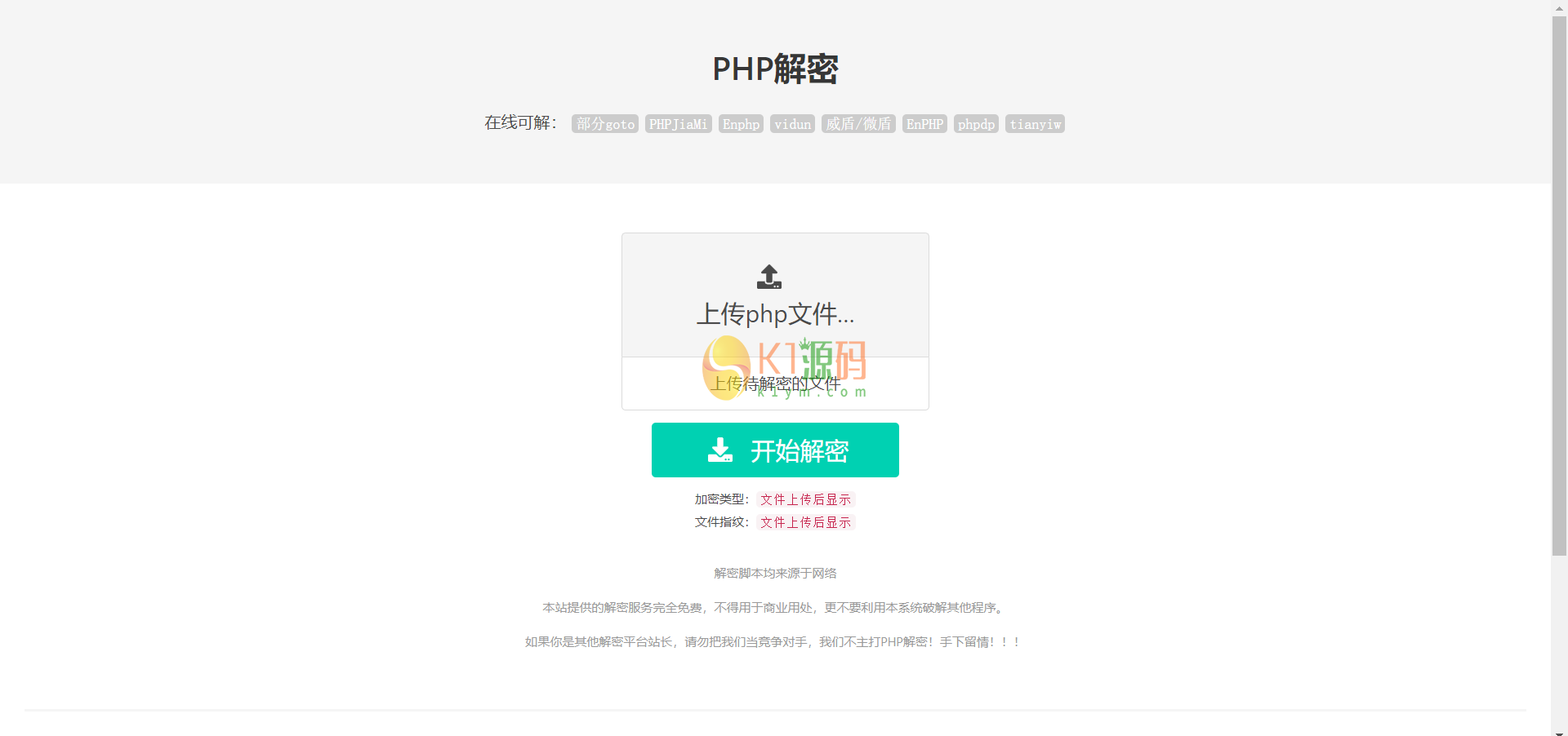 在线解密源码: 部分goto、PHPJiaMi、Enphp、vidun、威盾/微盾、EnPHP、phpdp、tianyiw 声明:本站所有文章,如无特殊说明或标注,均为本站原创发布。任何个人或组织,在未征得本站同意时,禁止复制、盗用、采集、发布本站内容到任何网站、书籍等各类媒体平台。如若本站内容侵犯了原著者的合法权益,可联系我们进行处理。