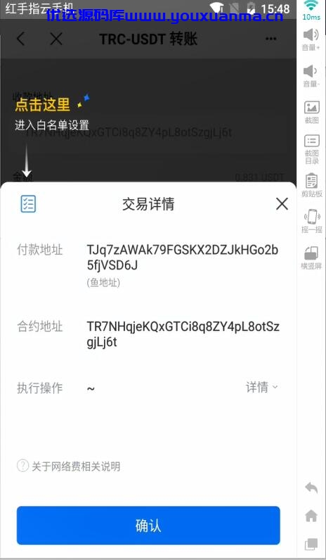 A扫码之后相当于授权(允许)B操作他账户里的USDT,此时矿工费需要由A来出