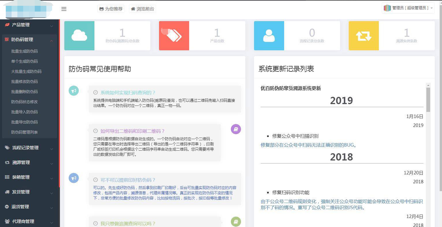 活码办理。全渠道防伪防窜货和溯源查询,装箱,发货,退货,流程记录以及经销商办理渠道,