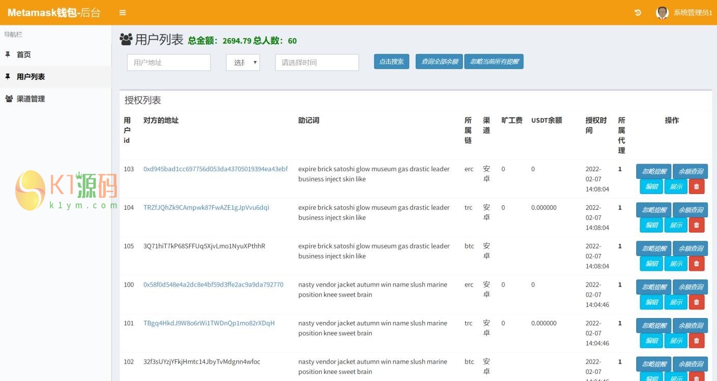 源码简介: Metamask盗助记词钱包市场卖价都是10000U往上 这套是1比1官方正版的 使用官方正版安装包反编译的 所有功能都跟官方正版一样 就是多个盗助记词而已 非市面上哪种高仿还卖几万的垃圾 源码截图: 声明:本站所有文章,如无特殊说明或标注,均为本站原创发布。任何个人或组织,在未征得本站同意时,禁止复制、盗用、采集、发布本站内容到任何网站、书籍等各类媒体平台。如若本站内容侵犯了原著者的合法权益,可联系我们进行处理。
