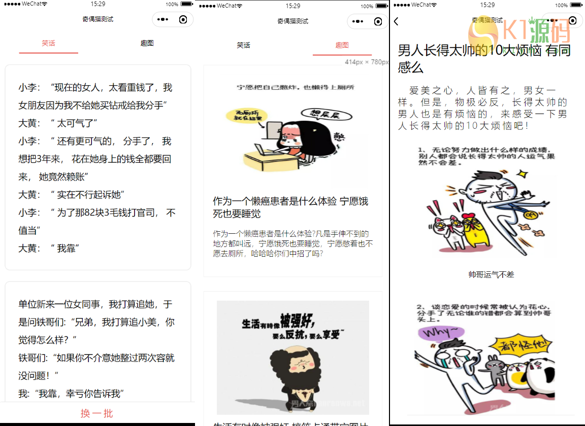 这是一款以笑话和趣味图为主的一款微信小程序源码