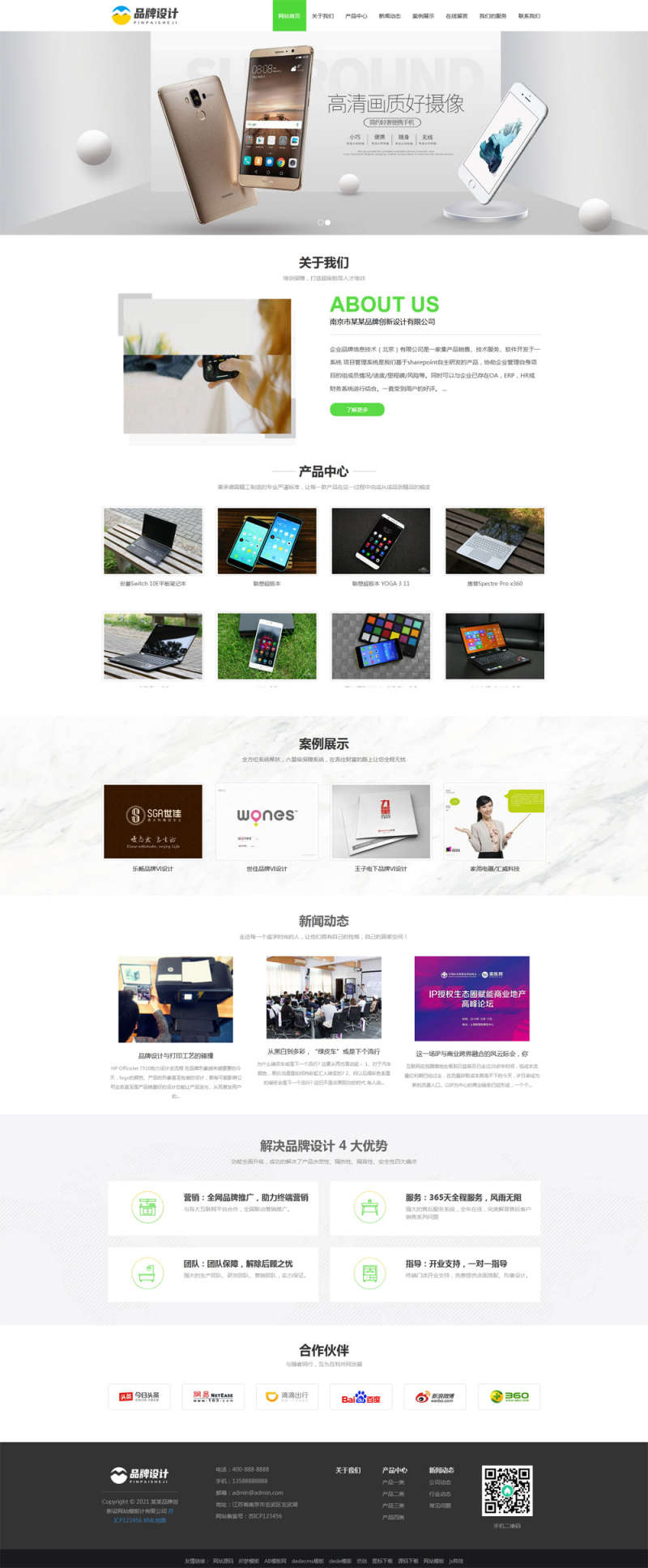 一款简洁响应式的网络品牌设计,创新广告设计公司网站源码dedecms下载。包含:关于我们、产品中心、新闻动态、案例展示、在线留言、我们的服务、联系我们等模块页面。