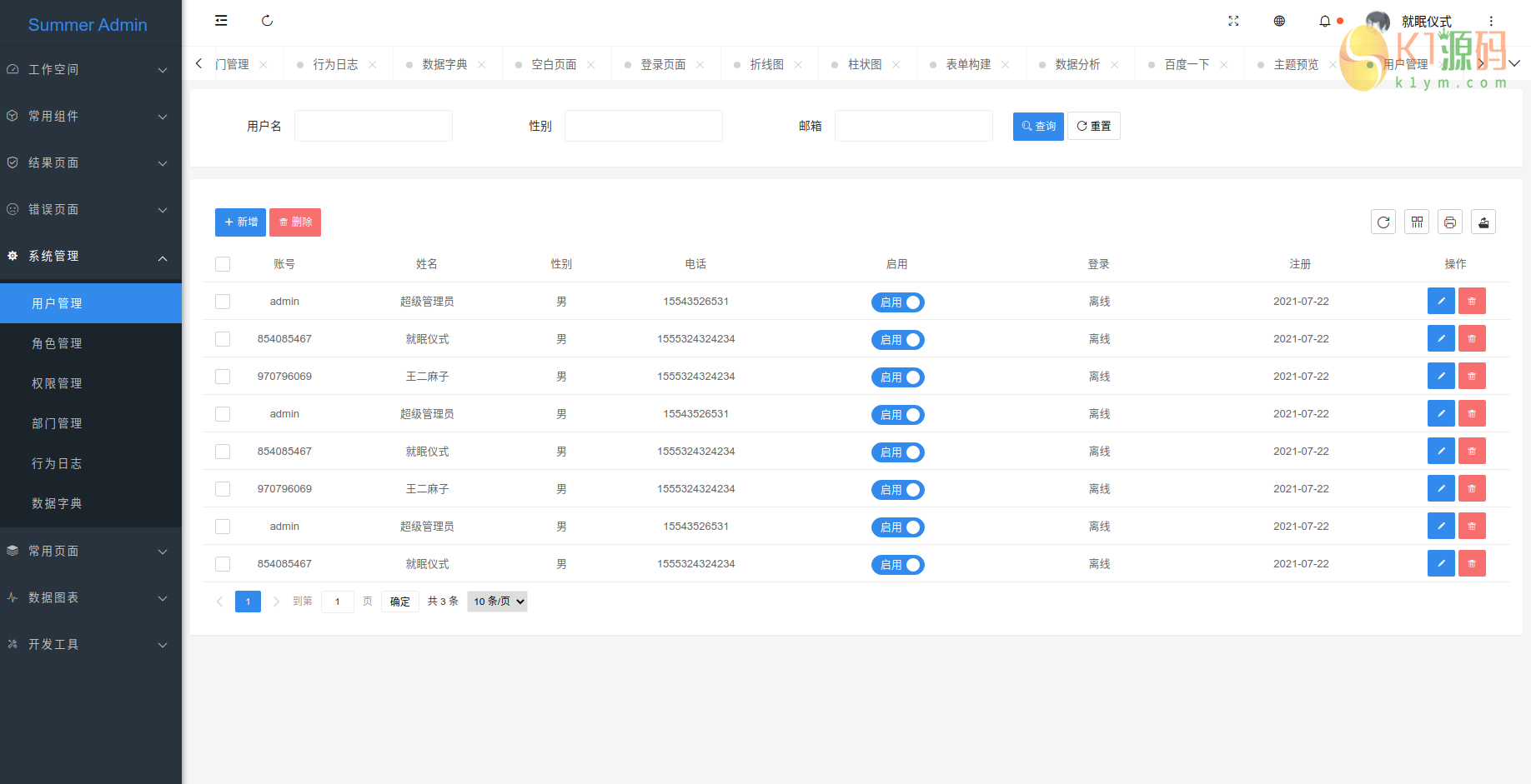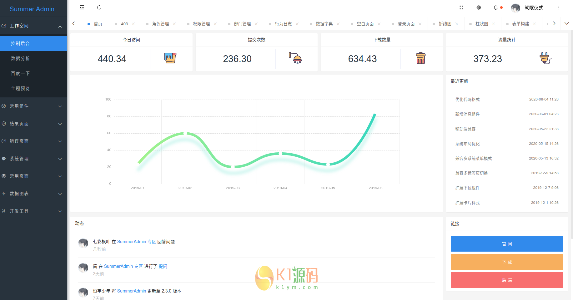 源码说明: 一款漂亮有质感的layui后台模板SummerAdmin 漂亮有质感 完整的页面 有良好的设计语言 适合后台二次开发用 多色彩多主题切换 多标签,标签自带完整的关闭功能 表单构建功能,适合快速开发 源码截图: 声明:本站所有文章,如无特殊说明或标注,均为本站原创发布。任何个人或组织,在未征得本站同意时,禁止复制、盗用、采集、发布本站内容到任何网站、书籍等各类媒体平台。如若本站内容侵犯了原著者的合法权益,可联系我们进行处理。