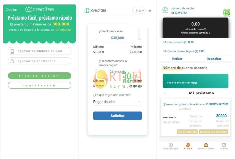 二开贷款借贷程序,PC自动适应。前端为西班牙语,后台为中文。