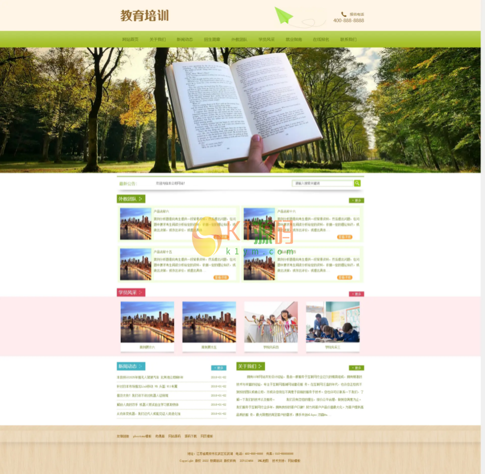 PbootCMS内核开发的网站模板,该模板适教育培训机构网站、小学学校网站等企业,当然其他行业也可以做,只需要把文字图片换成其他行业的即可;