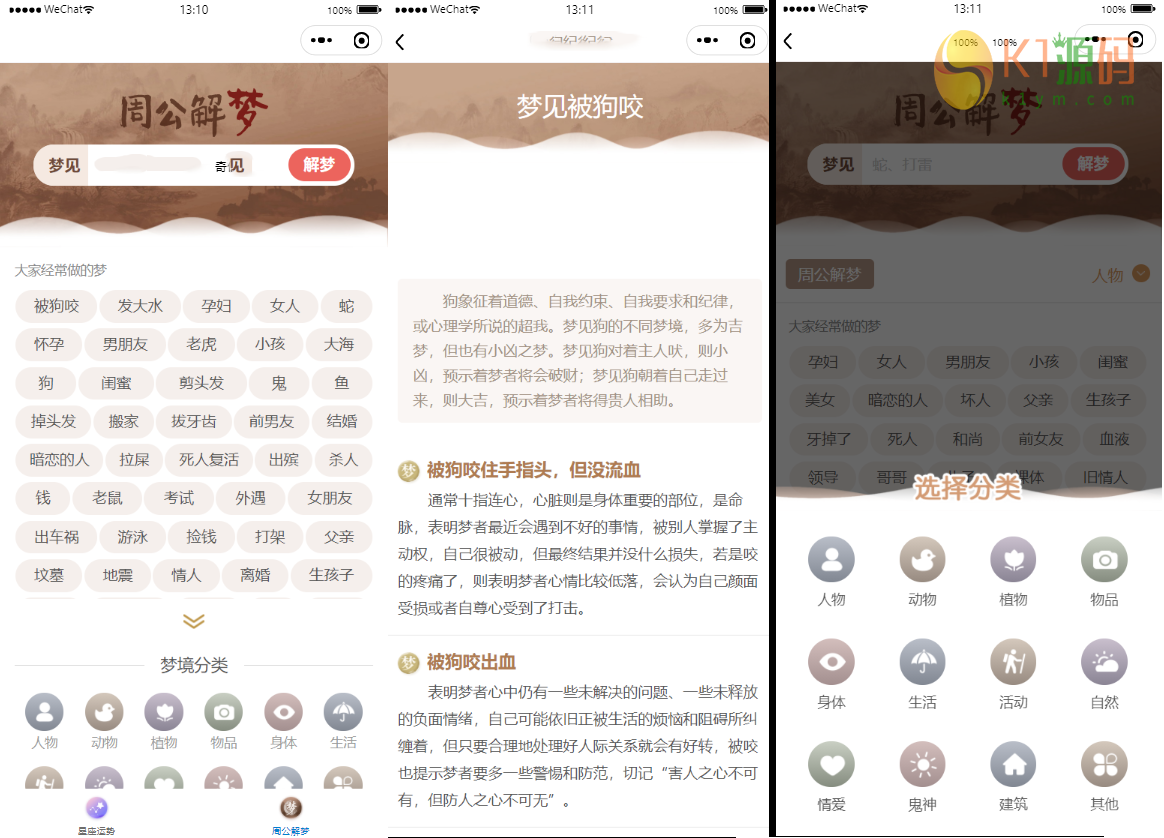 这是一款以星座运势查询,周公自定义解梦为主的一款小程序