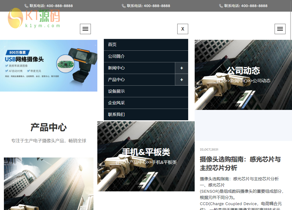 亲测|PbootCms响应式中英文双语电子产品网络摄像头探头网站模板