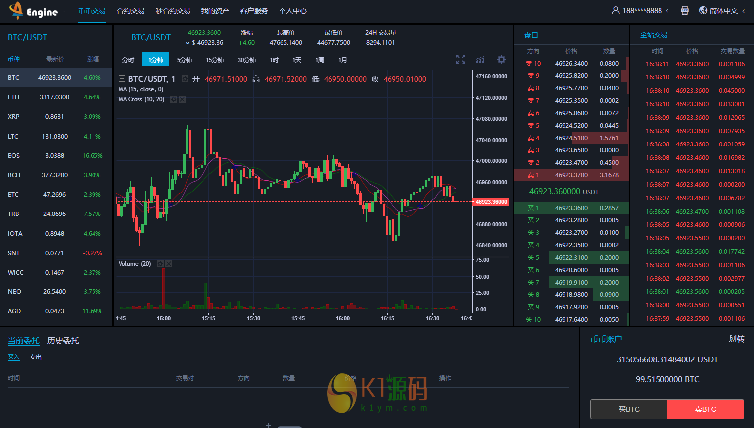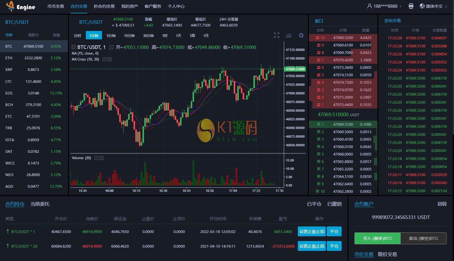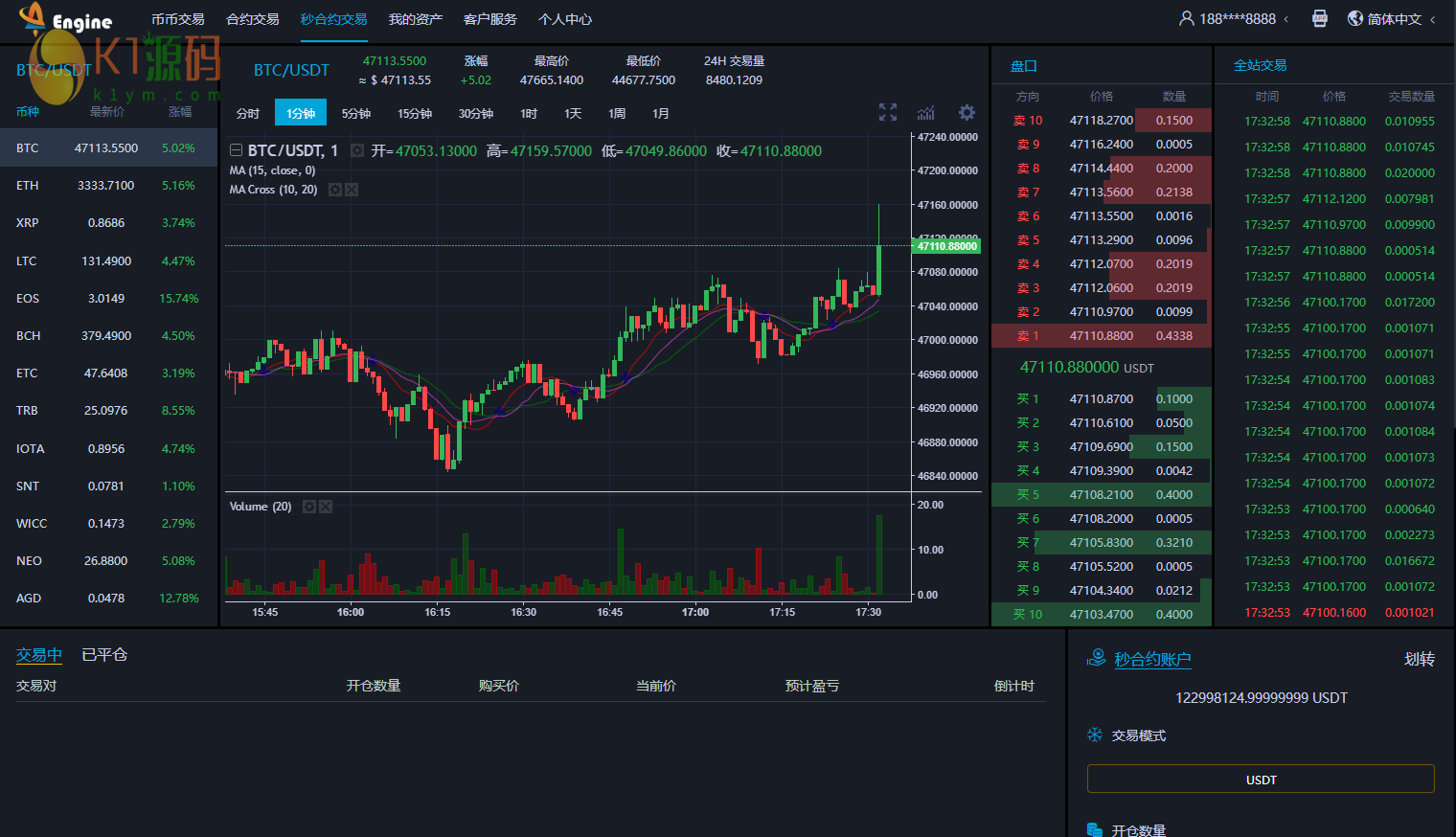 K线完美,币币交易,合约交易,秒合约交易,带申购,带VUE源码,可以打包APP
