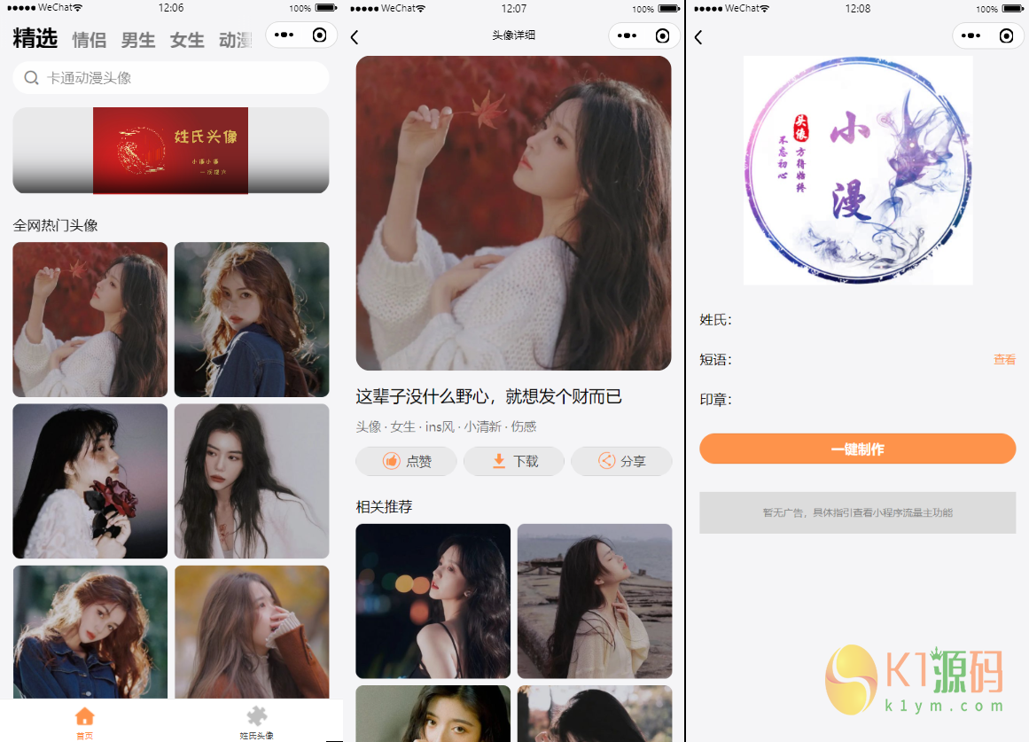 另外拥有标语选择,可以选择各类热门标语,以便于用户制作姓氏头像!