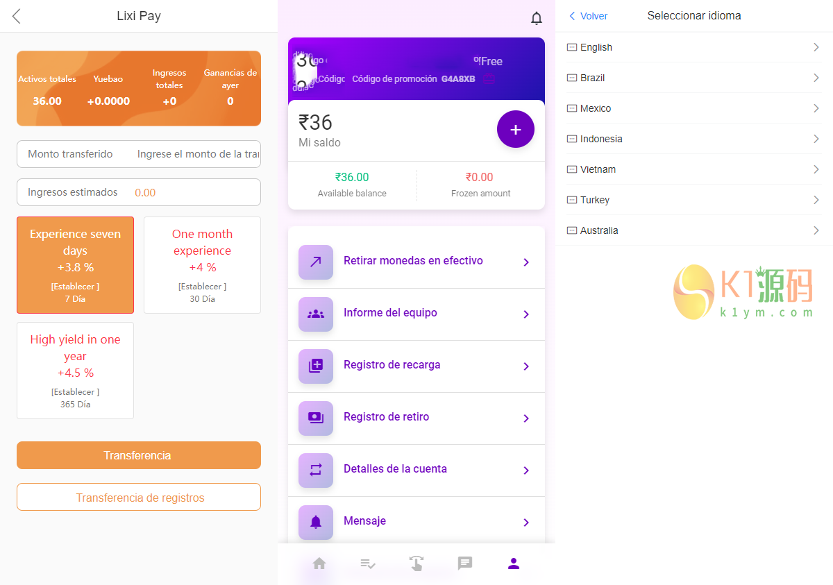 后台釆取全新框架,余额宝分为定数时间,一天,七天,一个月,一年,合约到就会产生收益。
