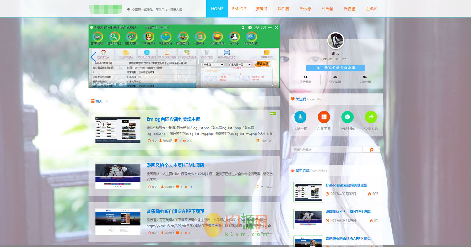 首先正常安装好emlog_5.3.1博客系统,然后把我打包的content文件夹替换原content文件。