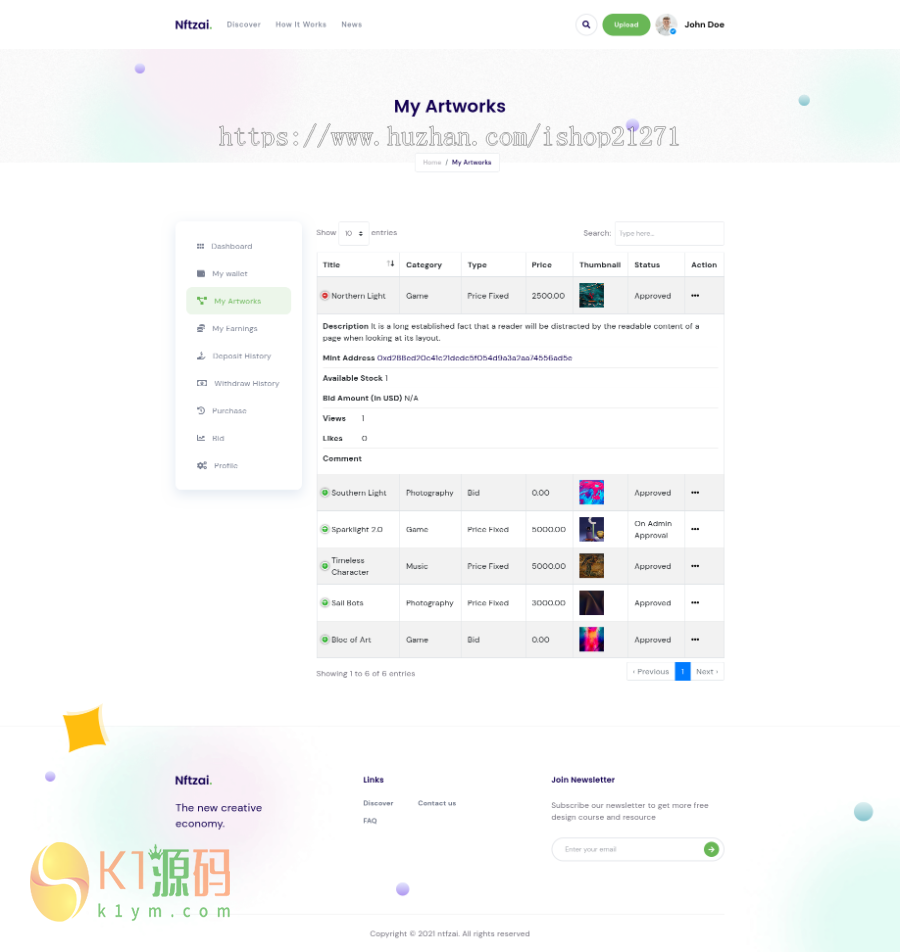 NFT买卖市场 艺术品交易商城系统,是一个nft市场,出售艺术品,购买艺术品。提供加密币存取系统