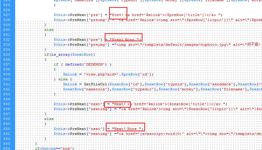 dedecms织梦模板如何将上一篇下一篇的文字改为英文 在include文件夹下 找到arc.archives.class.php 大概在827行 找到如下代码 将这四处修改为英文即可 修改以后如下: 声明:本站所有文章,如无特殊说明或标注,均为本站原创发布。任何个人或组织,在未征得本站同意时,禁止复制、盗用、采集、发布本站内容到任何网站、书籍等各类媒体平台。如若本站内容侵犯了原著者的合法权益,可联系我们进行处理。