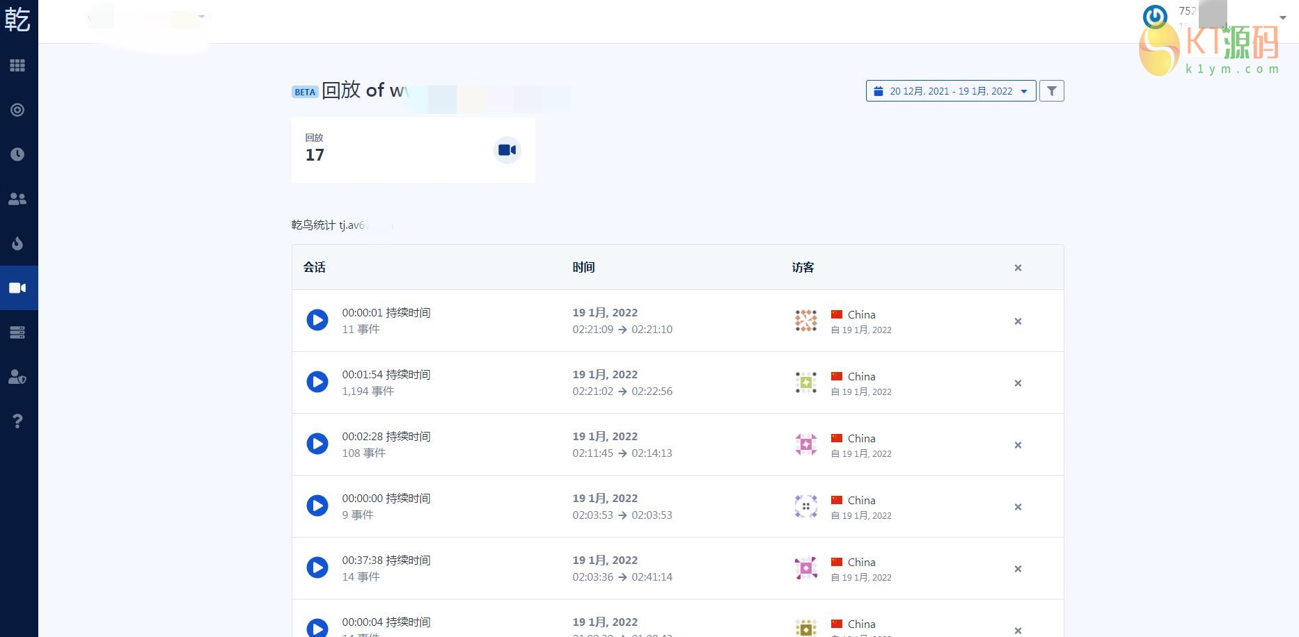 这是在整个其他所有统计网站上都没有的功能,也是你查看访客行为的不错方式, 他们点击了什么,他们浏览哪里,他们喜欢什么,不明白什么, 您可以轻松用视频回放了解他们的会话并准确看到做了什么,你甚至可以将统计代码放到你的网站管理后台来监控是否有人操作留下视频记录!