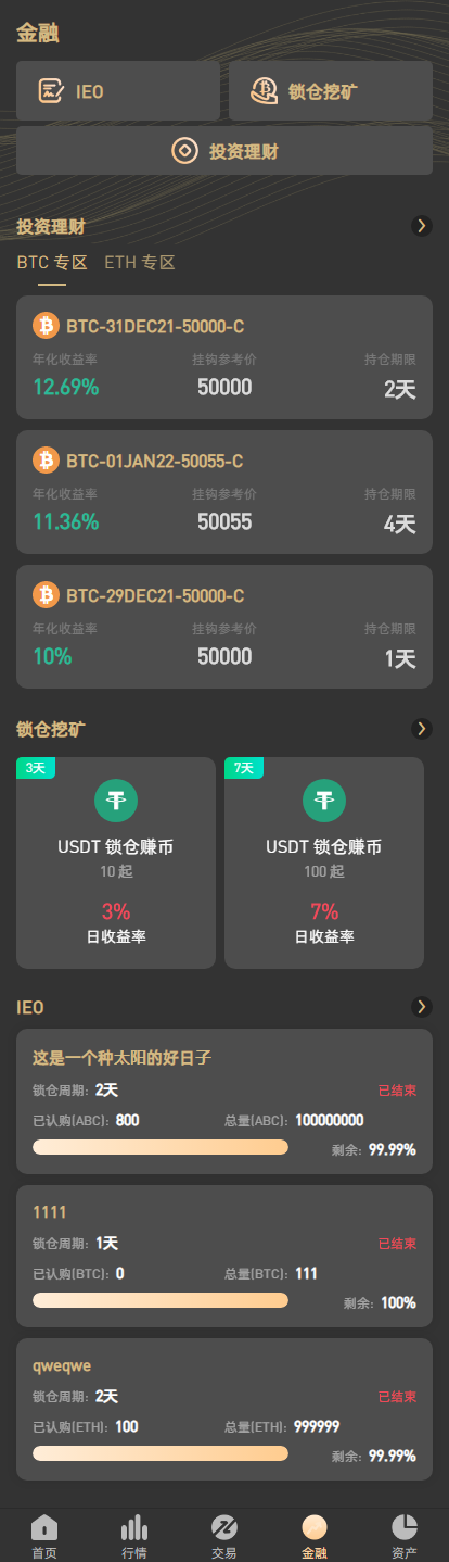 八种语言/全新UI设计交易所源码/币币/合约/期权/IEO/锁仓挖矿/投资理财 【区块链源码】