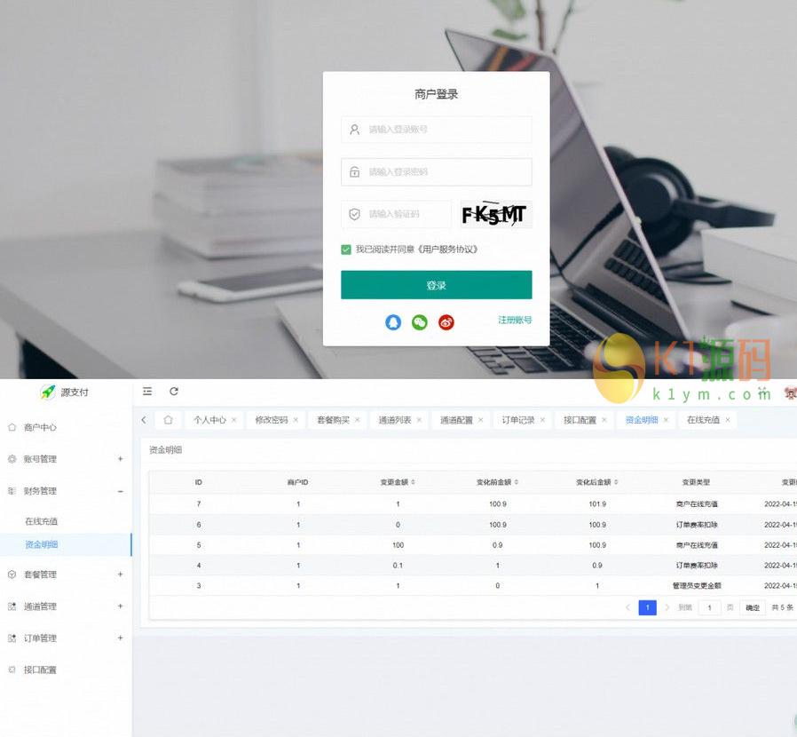 云端密钥填写ch-h 填写商户后台域名 和商户前台域名