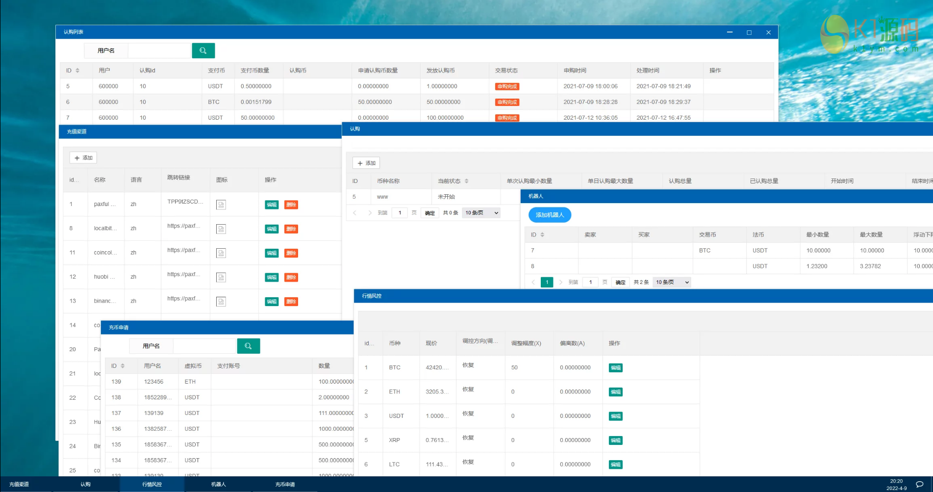这段时间很多朋友在问币币交易所,这套服务器bbank打包的又一个bbank不过前端二开成了html,界面看起来蛮漂亮得,功能也都基本正常,多语言有充值渠道管理,和认购。重点是:全开源