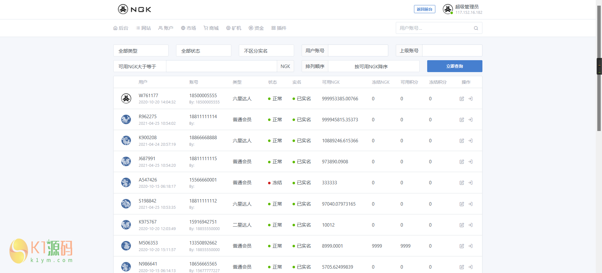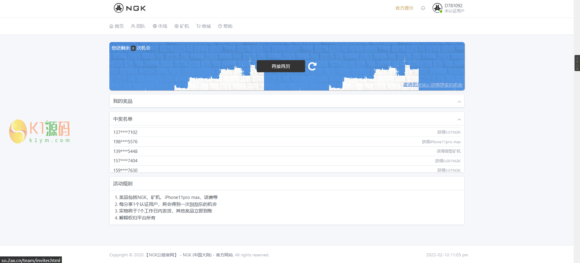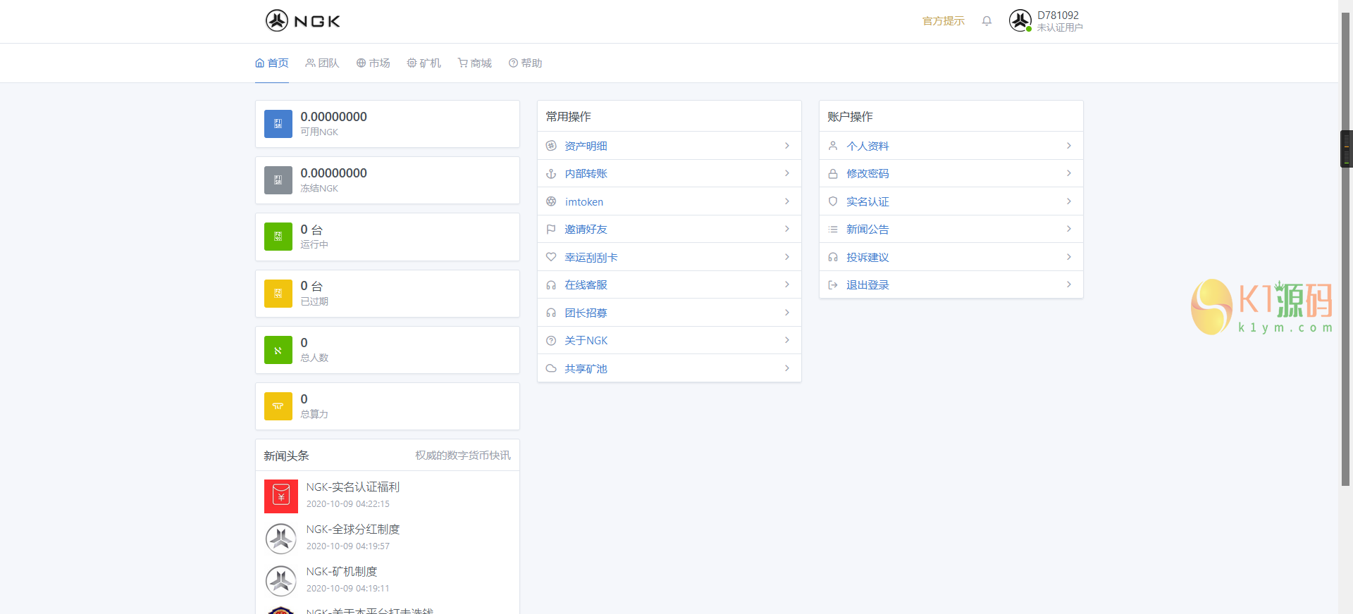 thinkphp6+mysql开发的NGK矿机区块链挖矿系统