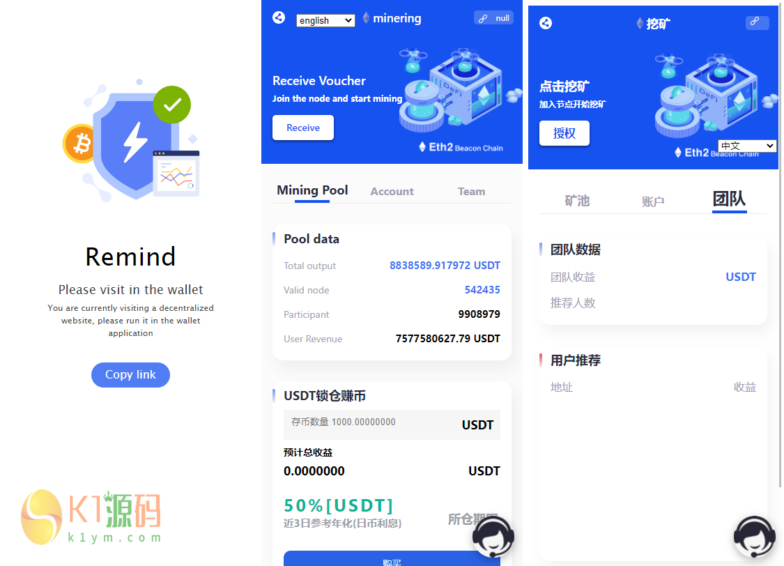 「完整版」6国语言挖矿盗U秒U系统源码|授权盗U系统|usdt挖矿|带搭建教程 eth_erc以太坊通道、tron_usdt波场通道 高价买来的现低价处理,有兴趣的赶紧上车。演示服务器已经到期不要再问演示了! 注:永久会员8折 声明:本站所有文章,如无特殊说明或标注,均为本站原创发布。任何个人或组织,在未征得本站同意时,禁止复制、盗用、采集、发布本站内容到任何网站、书籍等各类媒体平台。如若本站内容侵犯了原著者的合法权益,可联系我们进行处理。