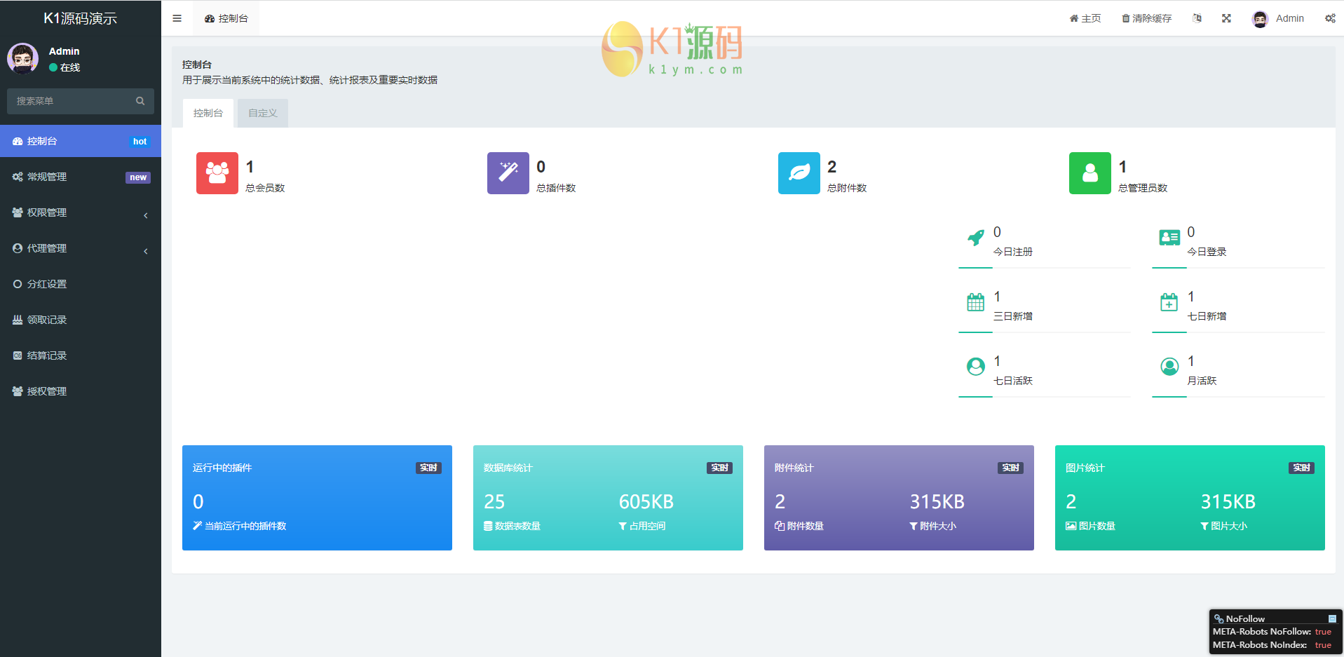 后台截图: