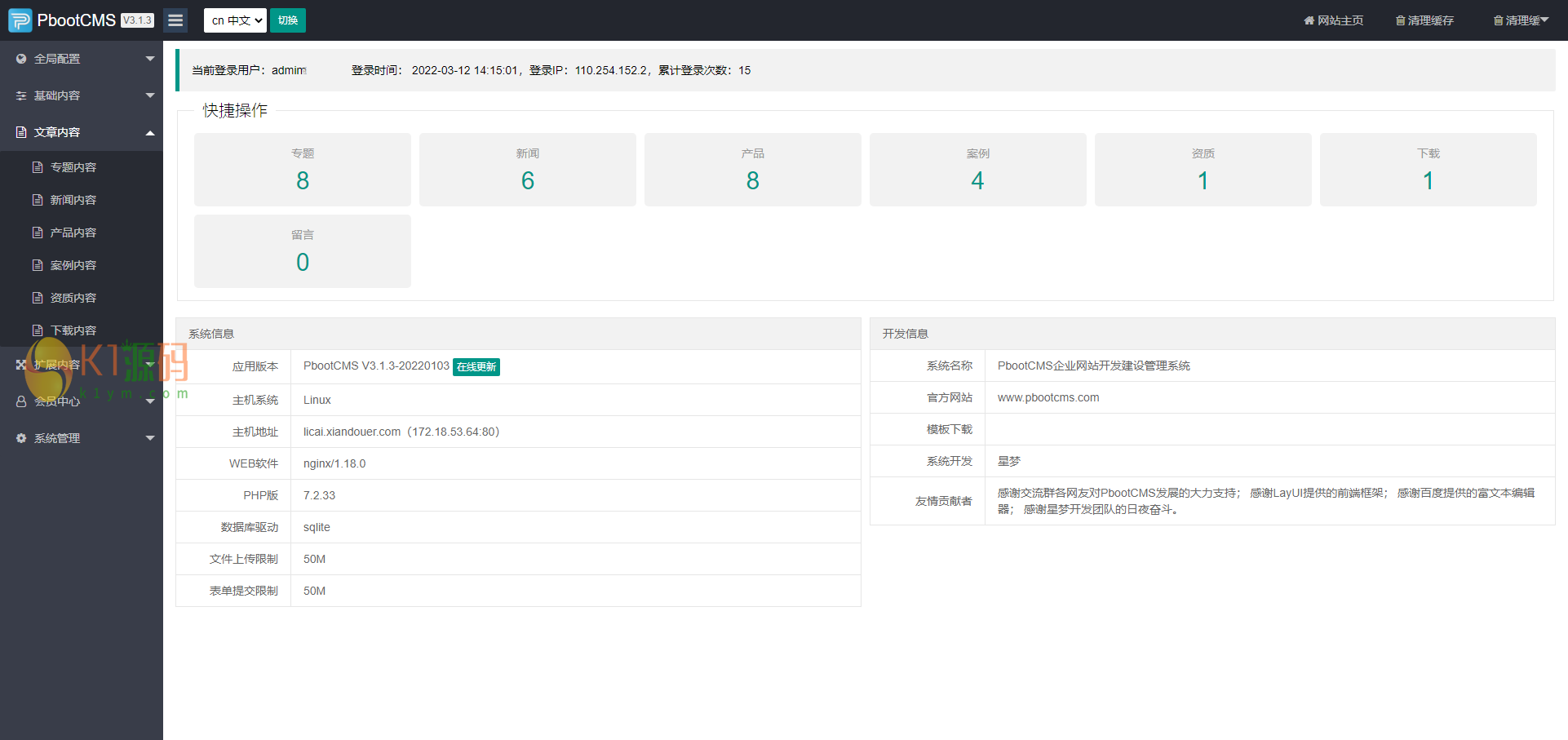 后台:域名/admin.php