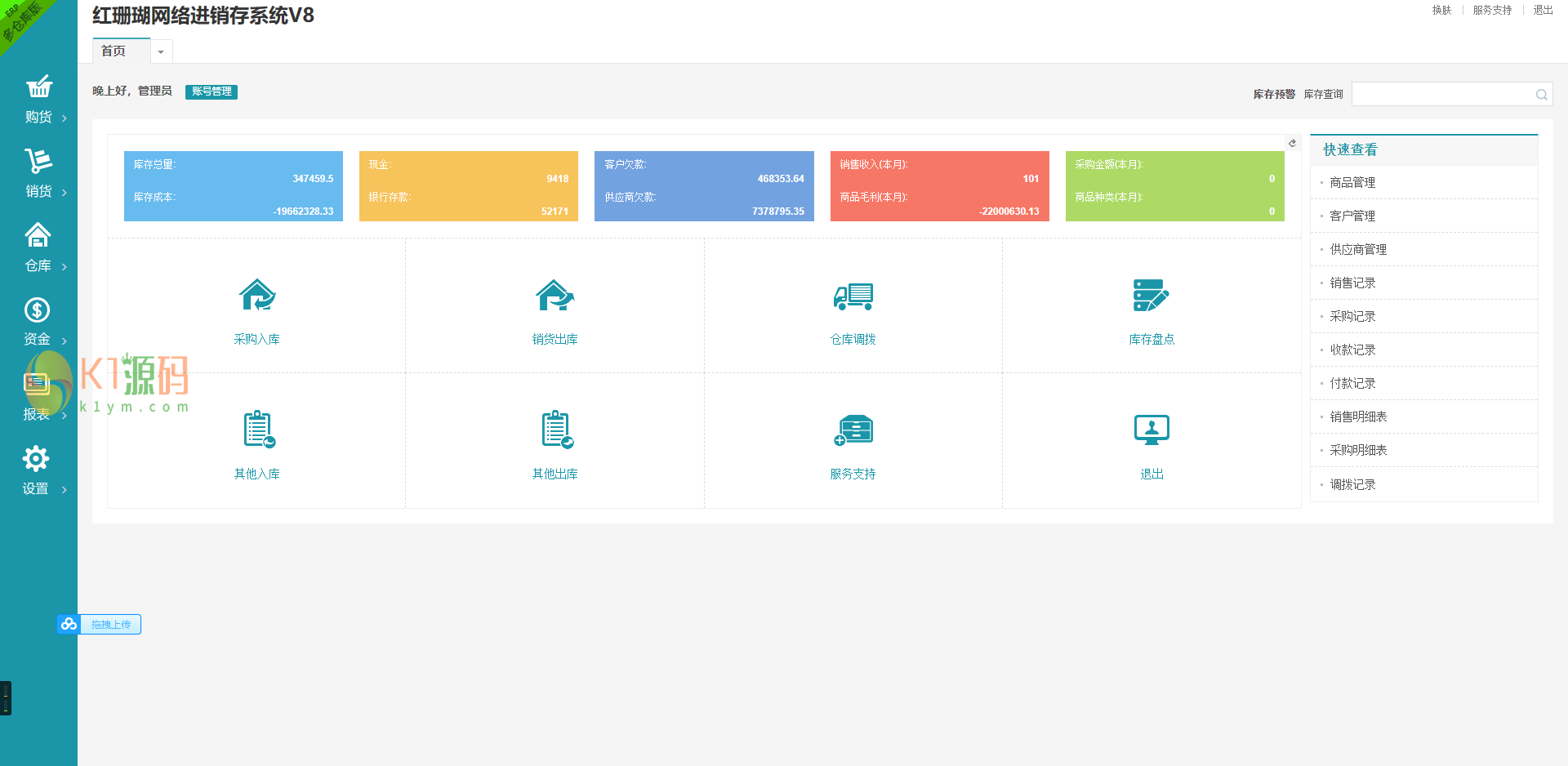 适用于工厂中的采购、领用,产品生产入库发货送货;批发零售公司的商品采购、销售发货;办公使用物品保管、分发、借出、归还等。功能介绍:一、入库管理:商品采购入库与退货、生产入库、次品返工、库存、入库统计、退货统计等。二、出库管理:商品销售、客户退货、部门领用、部门退回、出库统计、退库统计、库存等。三、库存管理:库存查询、库存盘点、库存报警等。四、统计报表:进销存明细、进销存汇总、收对账单、发货对账单、发货成本、销售毛利等查询。五、往来账款:应收、应付登记,收款、付款登记,应收、应付帐表等。六、系统设置: 权限分配、系统备份、数据清理、帐套管理等。
