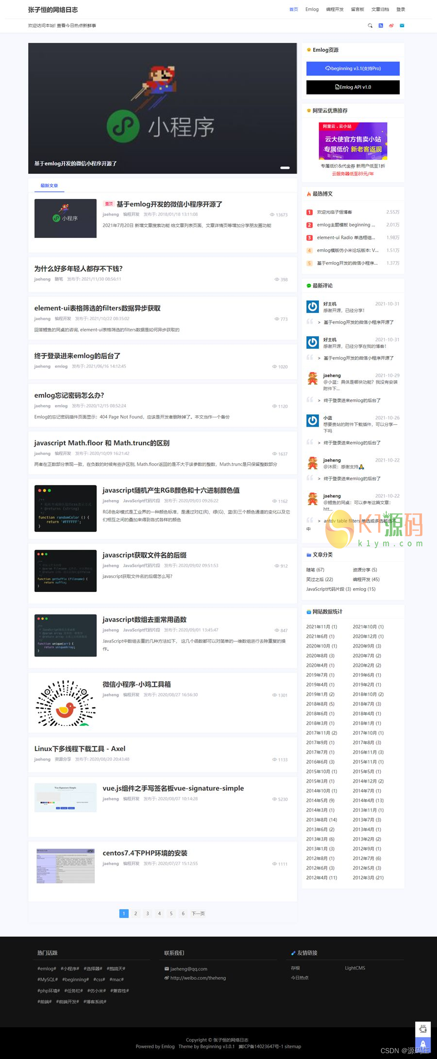 Beginning简约博客emlog主题模板V3,beginning是一款emlog博客模板,采用自适应式设计,头部展示博客数据统计,自媒体气息十足;中间有普通两栏,三栏,图片,视频等五种列表形式。是一个功能很强大的emlog博客模板。