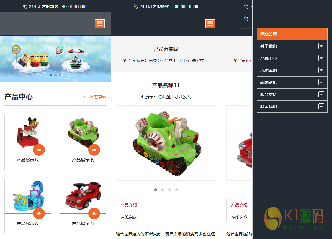 HTML5响应式儿童乐园玩具批发制造类企业网站pbootcms模板 玩具游乐设施网站源码下载
