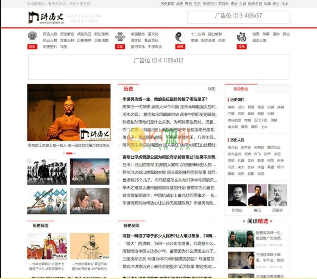 帝国CMS 7.5仿《讲历史网》模板,优秀的历史网帝国CMS模板。支持火车头采集源站自动更新