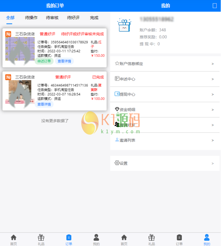 4.用户通过我的板块里的提现中心能够进行提现操作,申请的信息会反馈到后台进行审核