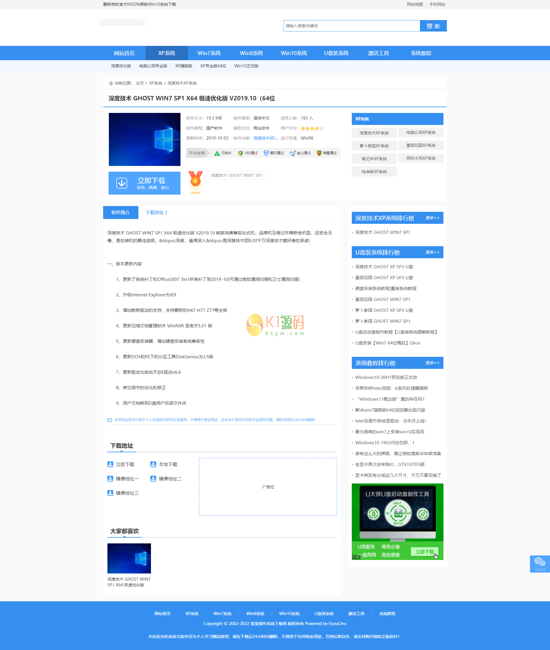 EyouCMS核心的电脑操作系统软件下载网站源码。模板自带eyoucms内核,无需再下载eyou系统,原创设计、手工书写DIV+CSS,完美兼容IE7+、Firefox、Chrome、360浏览器等;主流浏览器;结构容易优化;多终端均可正常预览。