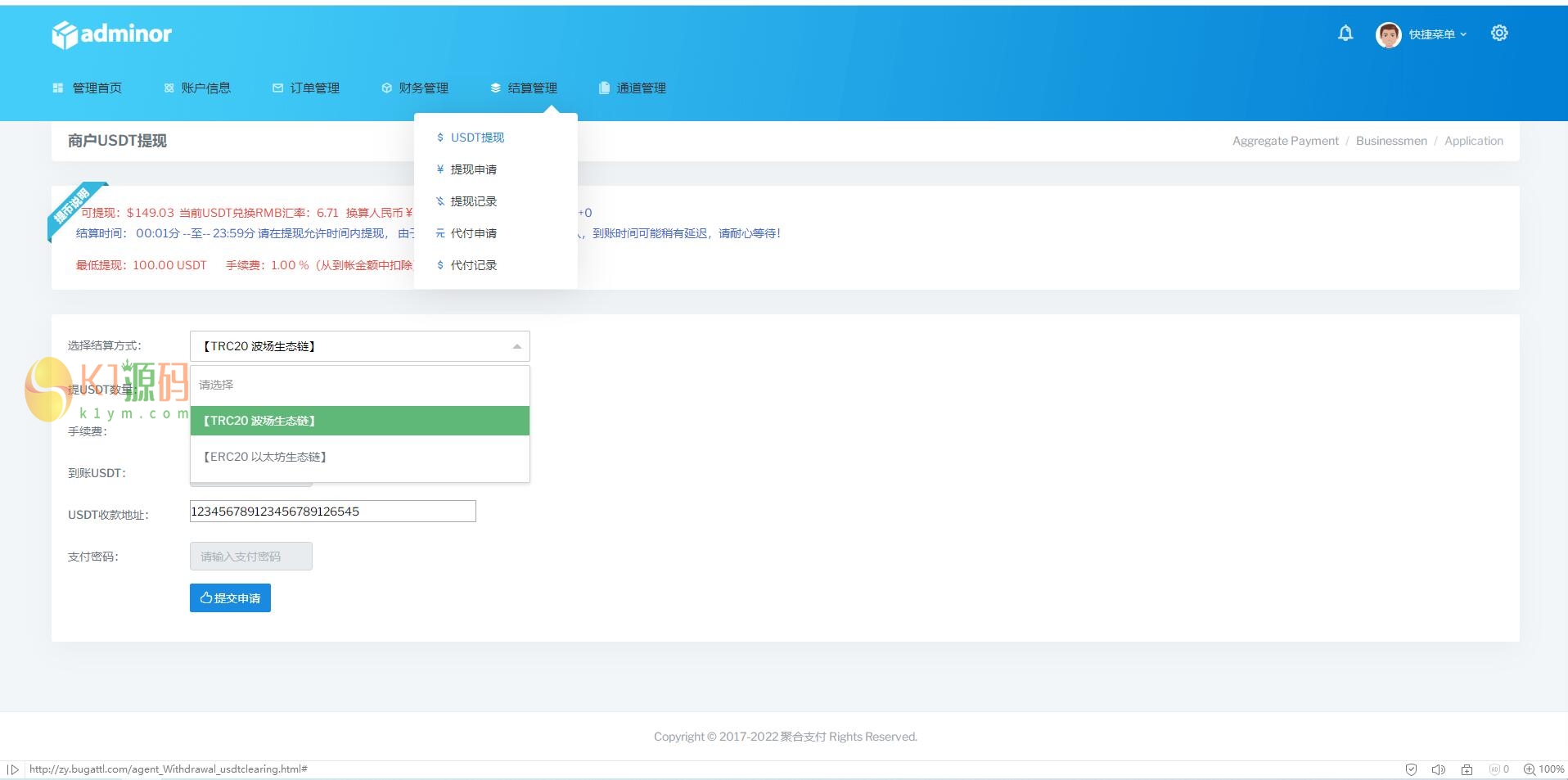 - 新增USDT兑换人民币汇率查询接口,汇率在系统基本设置中修改(提现按此汇率,如果进单有需要汇率转换的可以使用此接口)