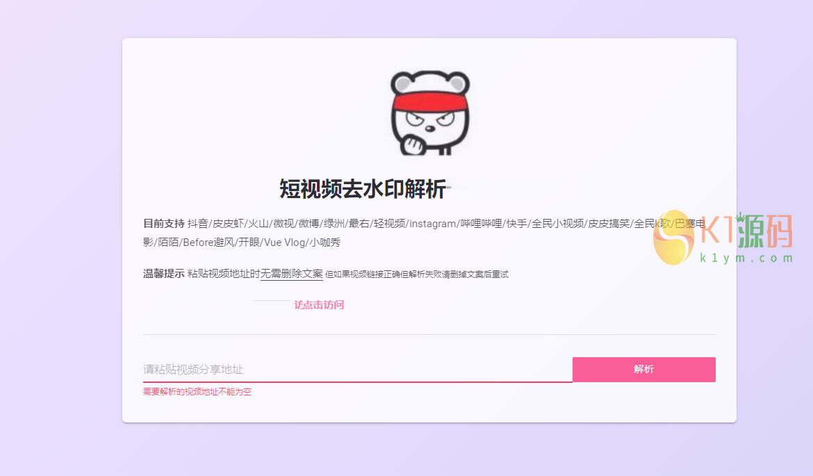 抖音/快手/b站/微视/西瓜/在线去水印附源码支持以下网站去水印