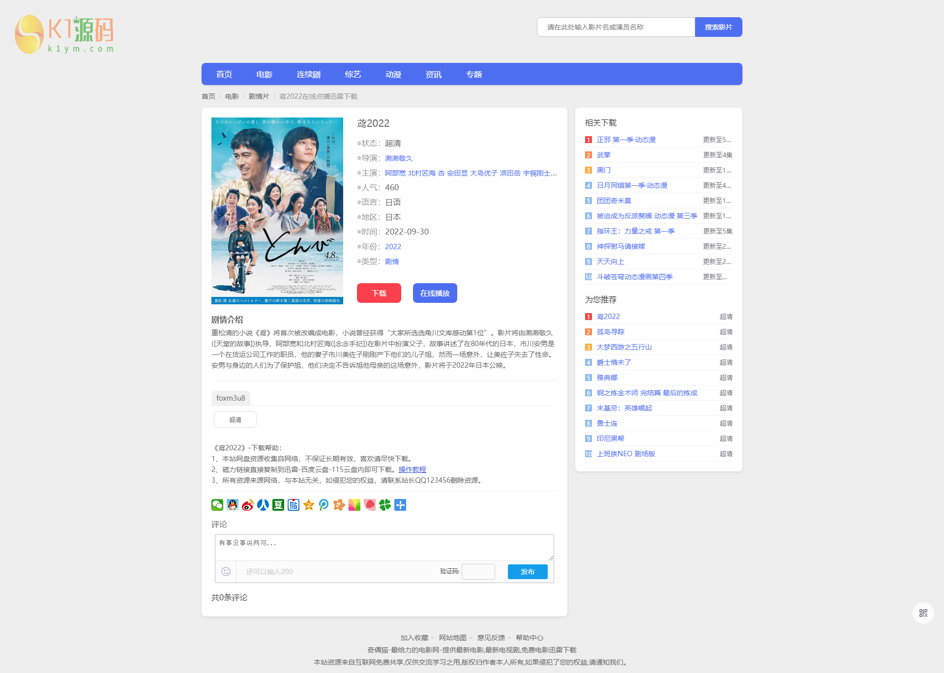 运行环境:php5.6+mysql5.6 苹果CMS简洁精美影视模板整站源码,蓝色简约响应式小鸟影视主题 是一款蛮好看的影视主题,适用于苹果CMSv10版本,双端自适应影视网站模板。 声明:本站所有文章,如无特殊说明或标注,均为本站原创发布。任何个人或组织,在未征得本站同意时,禁止复制、盗用、采集、发布本站内容到任何网站、书籍等各类媒体平台。如若本站内容侵犯了原著者的合法权益,可联系我们进行处理。
