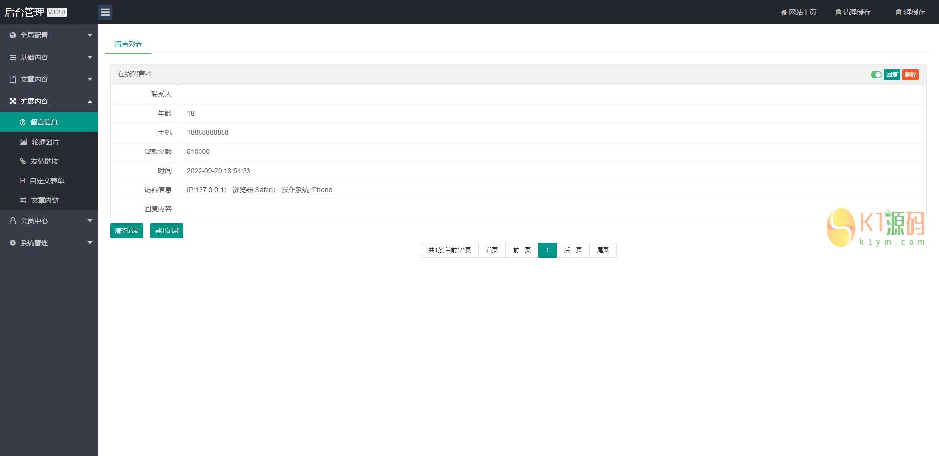 pc+wap,同一个后台,数据即时同步,简单适用!附带测试数据!