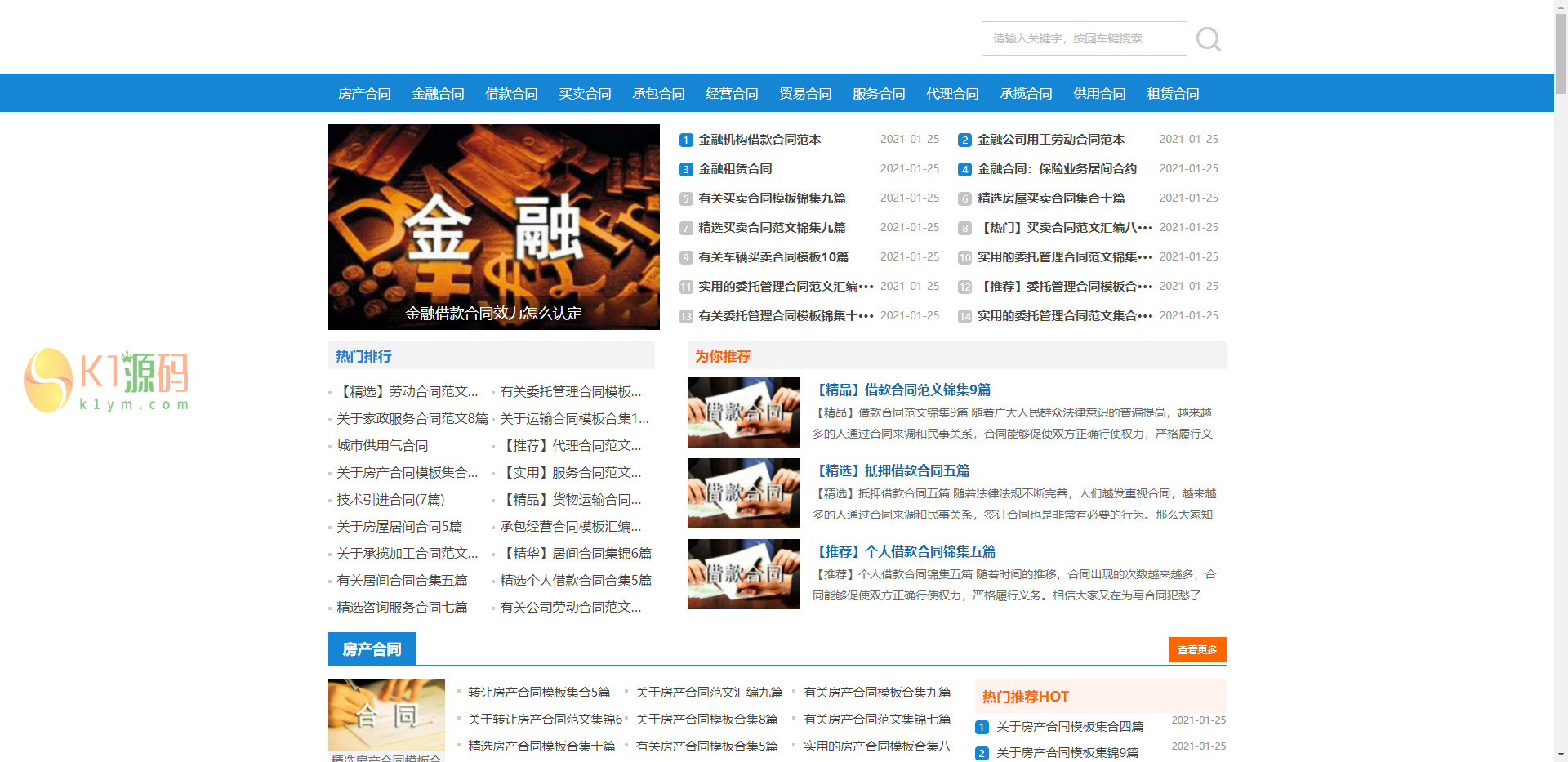 PbootCMS内核开发的网站模板,该模板适用于合同范文网站、合同模板网站等企业,当然其他行业也可以做,只需要把文字图片换成其他行业的即可;
