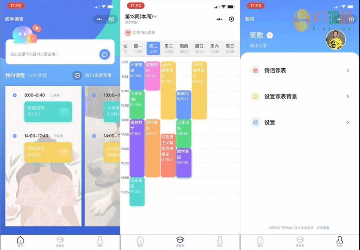 1、⾸⻚顶部氛围设置。因为课程表⼩程序太⼯具了,没有杂七杂⼋的功能,所以可运营空间不强,所以增