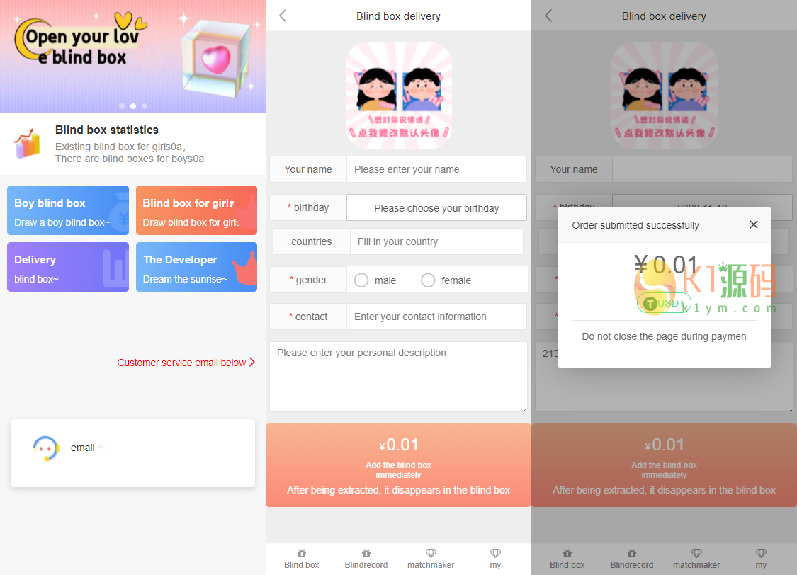 三方支付对接了usdt支付。 PHP交友盲盒,交友盲盒源码盲盒H5版本支持自定义支付。 PHP版本:PHP7及以上 导入shujuku.sql文件到数据库 修改config.php文件数据库配置信息 后台地址:域名/admin 账号:admin 密码:123456 声明:本站所有文章,如无特殊说明或标注,均为本站原创发布。任何个人或组织,在未征得本站同意时,禁止复制、盗用、采集、发布本站内容到任何网站、书籍等各类媒体平台。如若本站内容侵犯了原著者的合法权益,可联系我们进行处理。