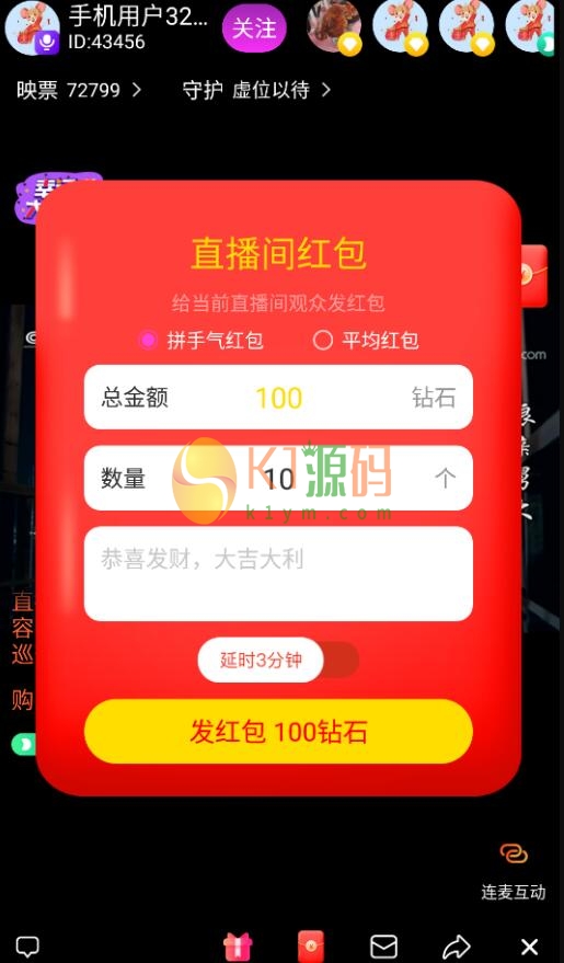 4.每日在线任务,直播间红包,直播连麦,直播pk,会员靓号坐骑