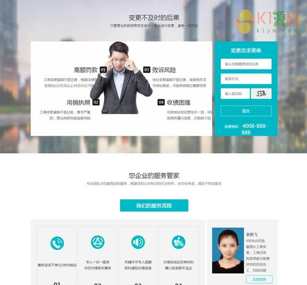 蓝色大气的工商记账,公司注册,企业资质业务办理公司网站响应式模板。主要有:关于我们、资质代理、工商代理、代理记账、资质转让、案例展示、新闻动态、联系我们等16个页面html下载。 声明:本站所有文章,如无特殊说明或标注,均为本站原创发布。任何个人或组织,在未征得本站同意时,禁止复制、盗用、采集、发布本站内容到任何网站、书籍等各类媒体平台。如若本站内容侵犯了原著者的合法权益,可联系我们进行处理。