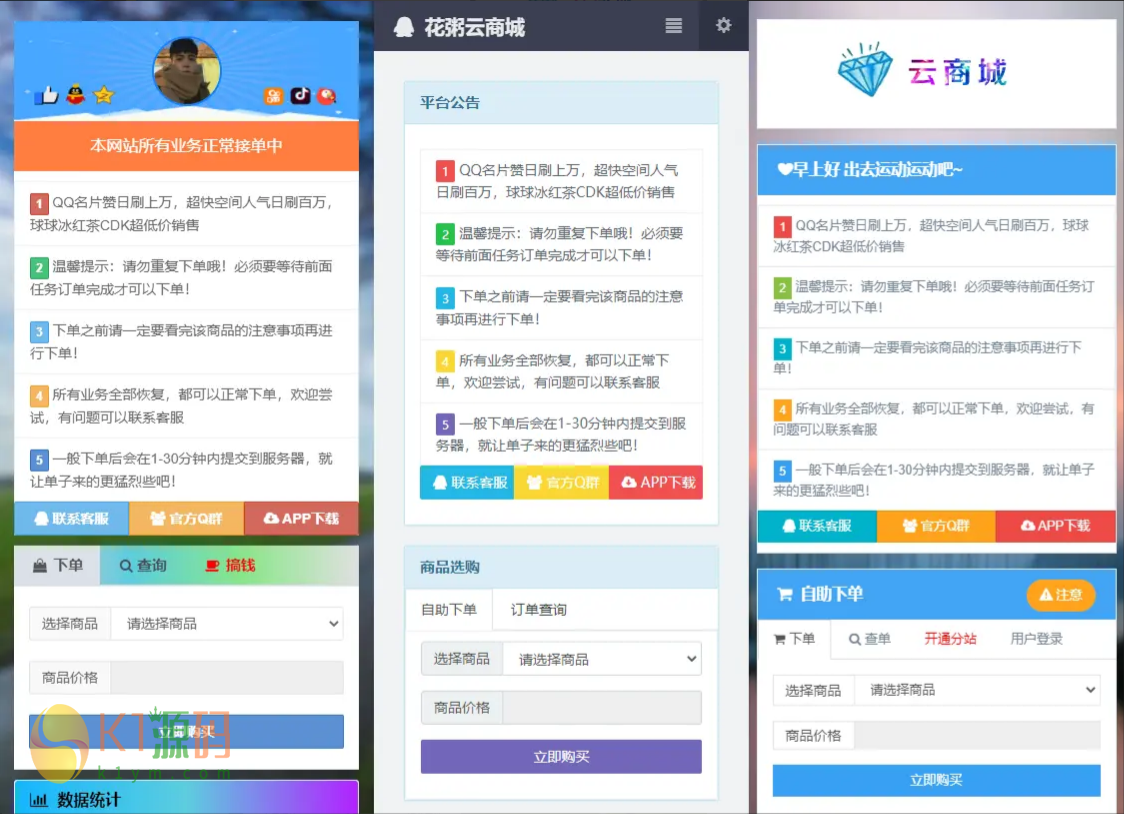 高仿某虹最新版花粥自助下单系统全开源无后门 PHP最低版本要求:7.2 安装说明: 上传到空间后直接访问即可根据提示安装。 V1.03 1.优化支付环节 2.新增直客SUP对接 3.新增站长一键跑路 声明:本站所有文章,如无特殊说明或标注,均为本站原创发布。任何个人或组织,在未征得本站同意时,禁止复制、盗用、采集、发布本站内容到任何网站、书籍等各类媒体平台。如若本站内容侵犯了原著者的合法权益,可联系我们进行处理。
