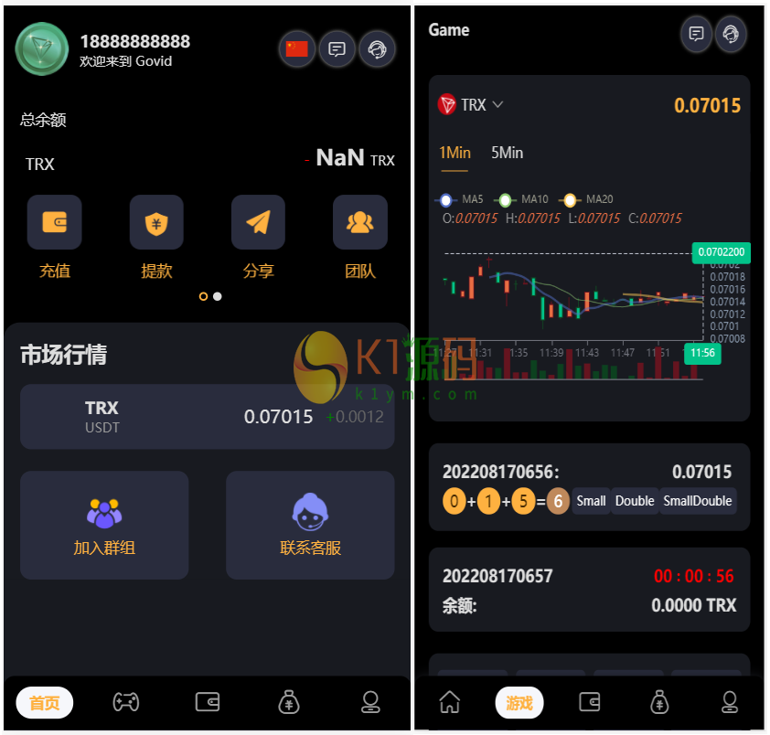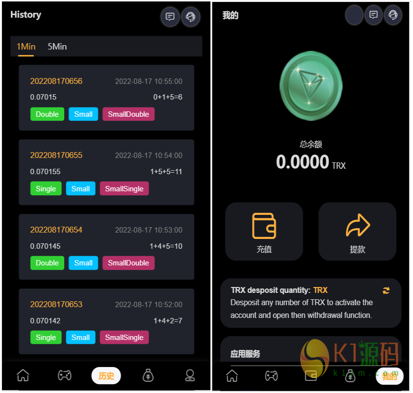 好像有点问题的,你们自行研究玩玩。 TRX大小竞猜等各种玩法,K线走势图, 声明:本站所有文章,如无特殊说明或标注,均为本站原创发布。任何个人或组织,在未征得本站同意时,禁止复制、盗用、采集、发布本站内容到任何网站、书籍等各类媒体平台。如若本站内容侵犯了原著者的合法权益,可联系我们进行处理。