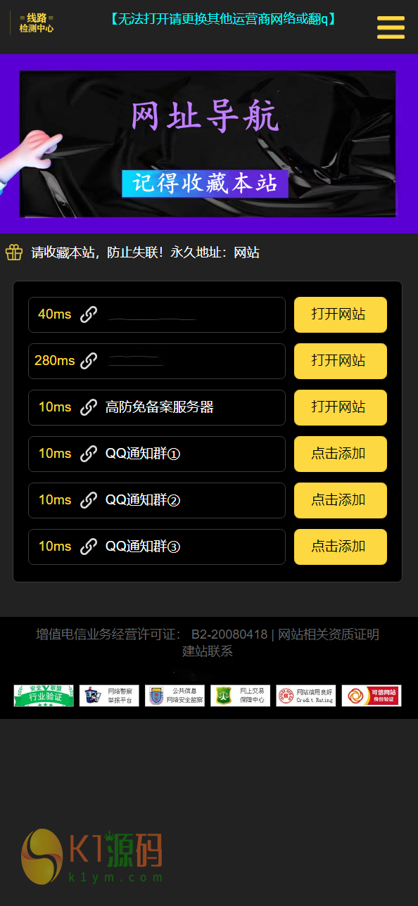 简单分享一下html页面可以做个引导页面! 在后台自行修改网址即可自动检测延迟 声明:本站所有文章,如无特殊说明或标注,均为本站原创发布。任何个人或组织,在未征得本站同意时,禁止复制、盗用、采集、发布本站内容到任何网站、书籍等各类媒体平台。如若本站内容侵犯了原著者的合法权益,可联系我们进行处理。