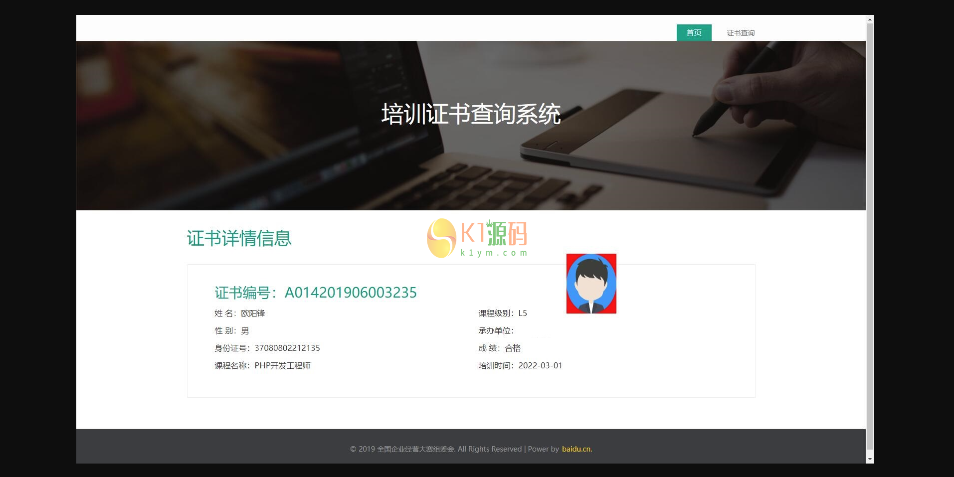 证书在线查询系统,资质证书显示网站源码,证书查询自适应手机端 新鲜打包的证书在线查询系统,资质证书显示网站源码,证书查询自适应手机端, 采用的是thinkphp开源内核,无版权可商用,非常不错的,可开发度很高, 可以继续美化和开发,我比较懒了,本想是美化美化再发出来的, 还是直接打包发出来发给有需要的朋友了。