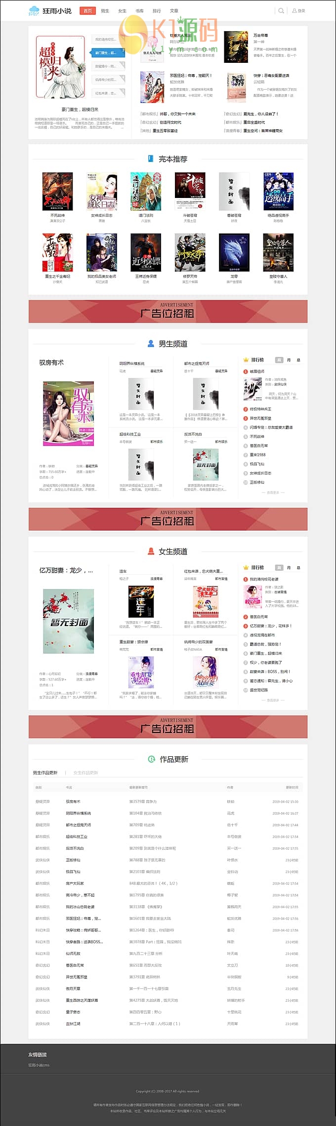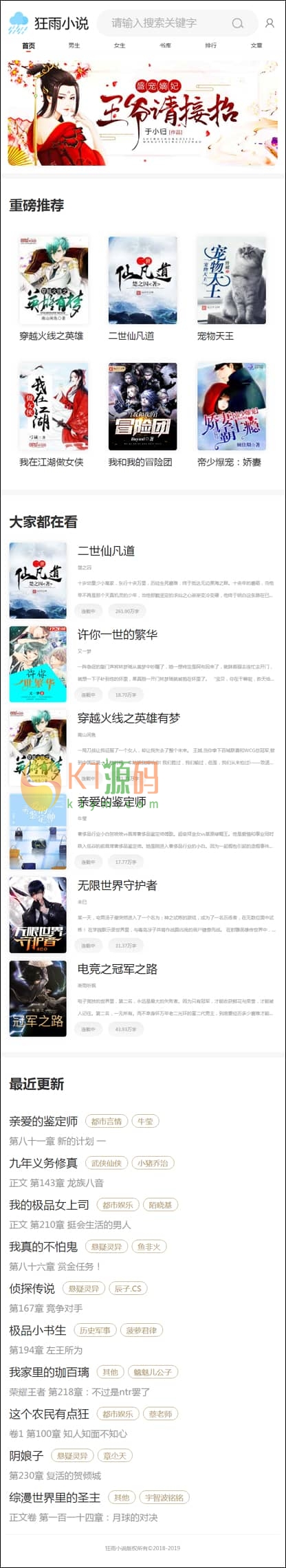 狂雨小说系统带全部插件,真正可以运营的小说站点系统源码!! 狂雨CMS插件大全,听书插件带教程、七牛云存储、百度自动推送、 2套收费白色模板+手机+电脑端、单本采集插件、3个采集规则、源码 声明:本站所有文章,如无特殊说明或标注,均为本站原创发布。任何个人或组织,在未征得本站同意时,禁止复制、盗用、采集、发布本站内容到任何网站、书籍等各类媒体平台。如若本站内容侵犯了原著者的合法权益,可联系我们进行处理。