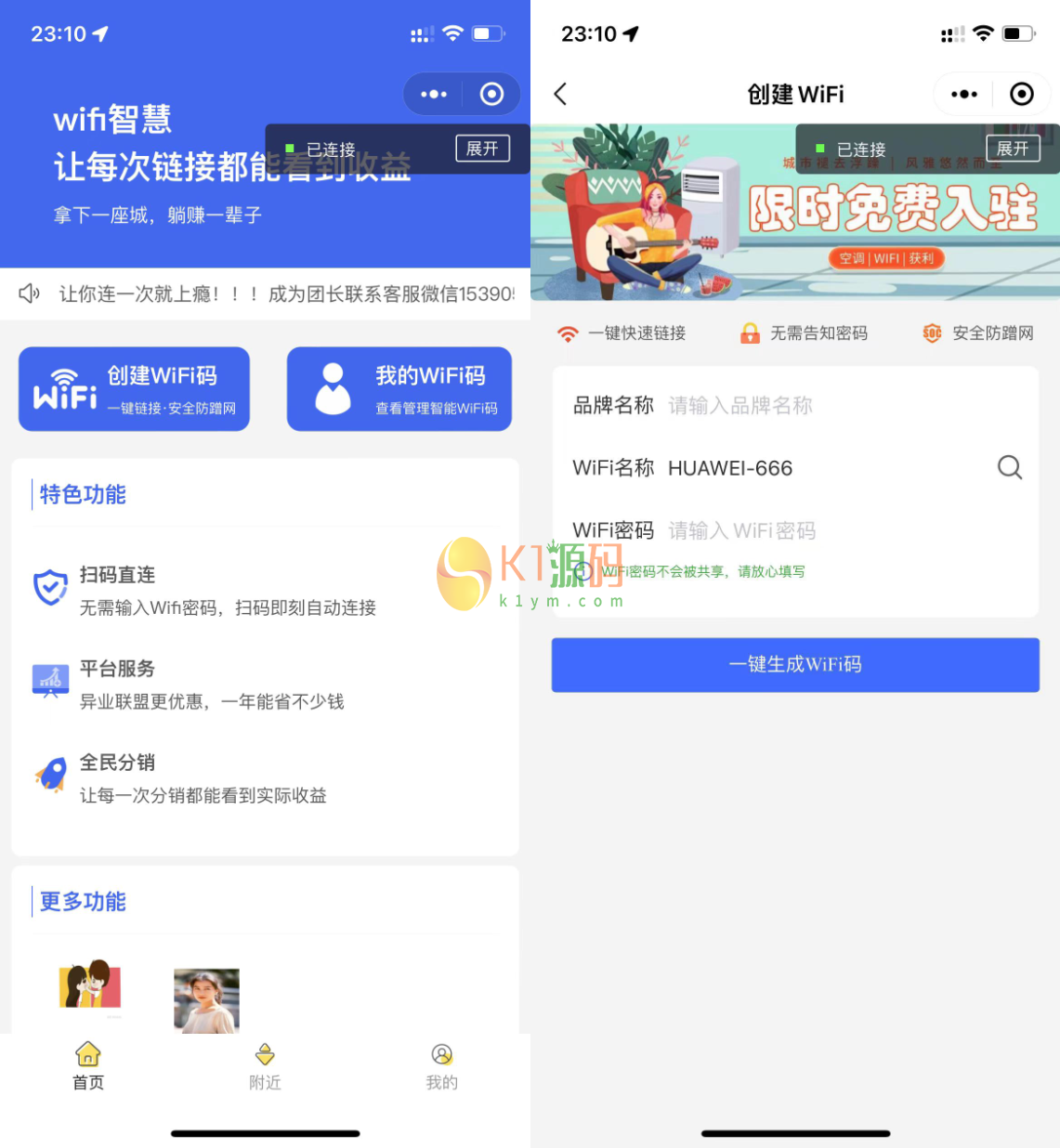 用户到商家扫码链接Wi-Fi,就可以得到流量主分成,商家Wi-Fi本身是免费的,用户也不需要花钱,这时候商家还能赚钱。