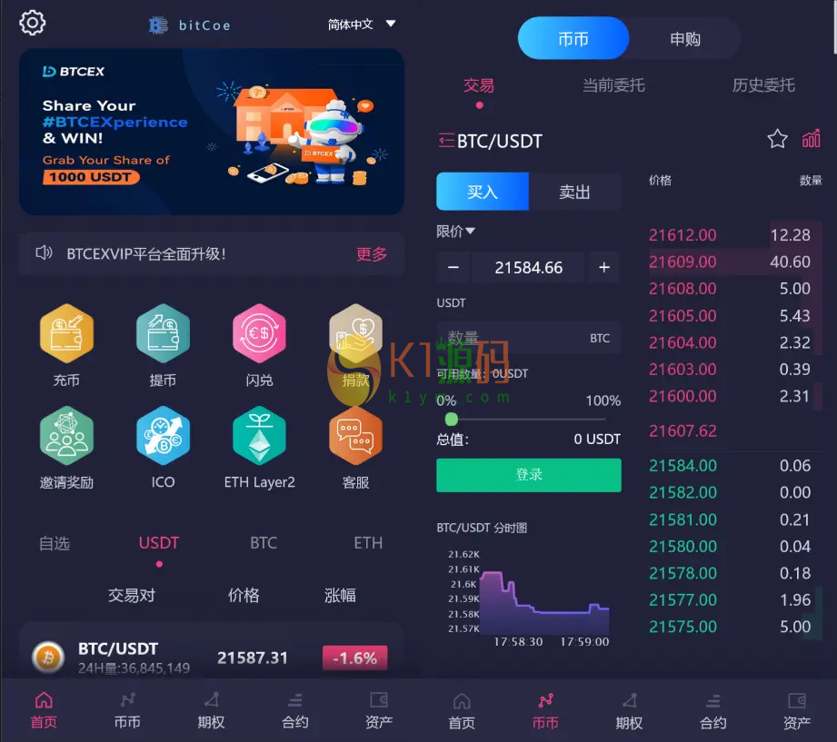 出售一套十九国语言交易所源码/秒合约/申购/锁仓/K线完整/日夜模式/带开源工程+搭建教程 完完整整的交易所源码,带开源工程 声明:本站所有文章,如无特殊说明或标注,均为本站原创发布。任何个人或组织,在未征得本站同意时,禁止复制、盗用、采集、发布本站内容到任何网站、书籍等各类媒体平台。如若本站内容侵犯了原著者的合法权益,可联系我们进行处理。